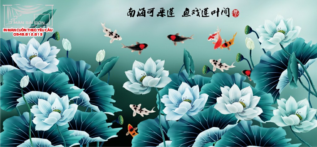 Màn cuốn in tranh hoa sen HS-10