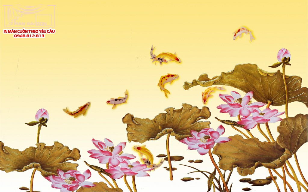 Màn cuốn in tranh hoa sen HS-28