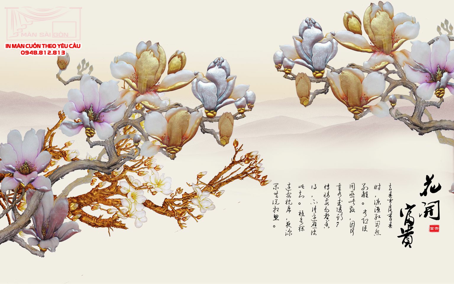 Màn cuốn in tranh phong thủy thư pháp TTP-22