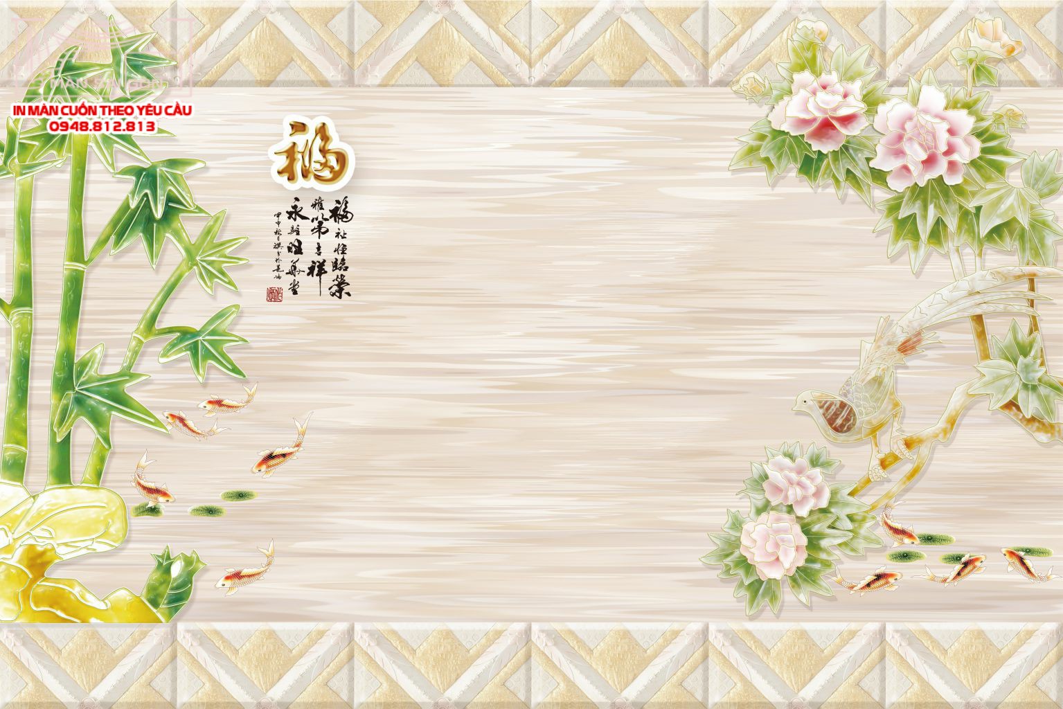 Màn cuốn in tranh phong thủy thư pháp TTP-53